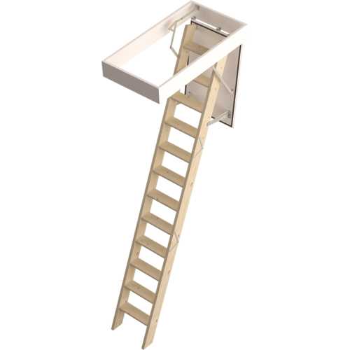 Escalier partiellement monté, pour faciliter l'installation, composé de 3 parties qui se replient les unes sur les autres. Hauteur sol/plafond de 2800 mm. 12 marches de 80 mm de profondeur et d'une épaisseur de 27 mm, comme les limons. 1 loquet en métal permet la fermeture de la trappe de 33 mm, blanche et isolée. Conforme aux normes européennes.